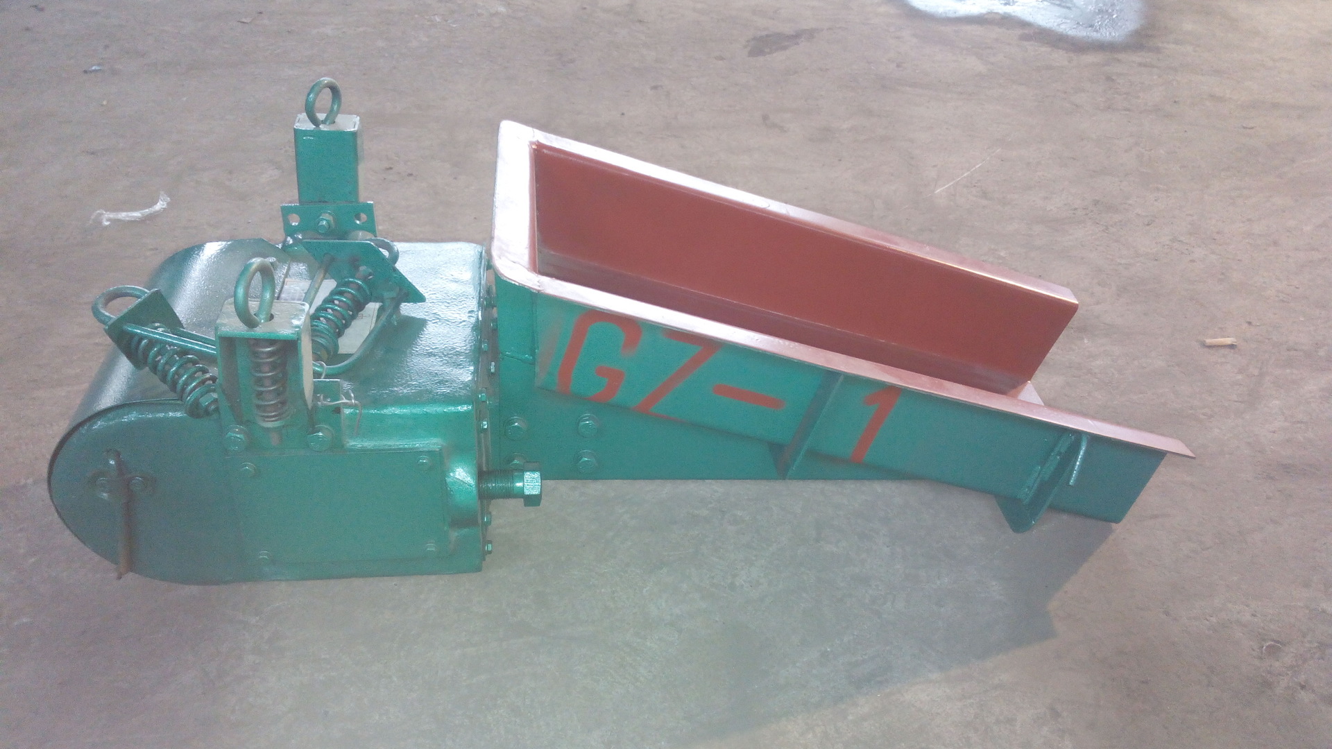 新陽(yáng)機(jī)械廠生產(chǎn)GZ系列的電磁振動(dòng)給料機(jī)廣泛應(yīng)用于:礦山、冶金、煤炭、建材、輕工、電力、機(jī)械、糧食等行業(yè)中,用于把塊狀、顆粒狀及粉狀物料從料倉(cāng)或漏斗中均勻連續(xù)或定量的給到受料裝置中去。例如,與帶式輸送機(jī)、斗式提升機(jī)、篩分設(shè)備、粉碎設(shè)備、研磨設(shè)備、擠壓設(shè)備等配套使用;也可用于自動(dòng)控制流程中,實(shí)行生產(chǎn)流程的自動(dòng)化。其體積小、重量輕、安裝方便、無(wú)轉(zhuǎn)動(dòng)部件、不需潤(rùn)滑、維修方便、工作頻率高、消耗電能少。